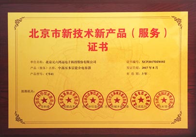 近日,公司的CT41中高压多层瓷介电容器产品获得北京市科学技术委员会、北京市发展和改革委员会、北京市经济和信息化委员会、北京市住房和城乡建设委员会、北京市质量技术监督局、中关村科技园区管理委员会联合颁发的北京市新技术新产品(服务)证书,并授予牌匾,这是继2016年12月CC41Q射频微波多层片式瓷介电容器获得证书后,公司产品再次通过此项认定。